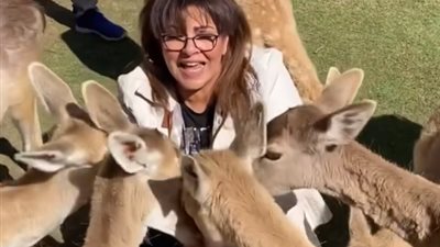 شاركت الفنانة هالة صدقى جمهورها فيديو جديد لها وكانت فى حديقة وحولها مجموعة من الغزال