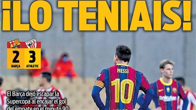تصدرت خسارة فريق برشلونة لنهائي كأس السوبر الإسباني أمام بيلباو بنتيجة 2 - 3 في المباراة التي جمعتهما مساء أمس