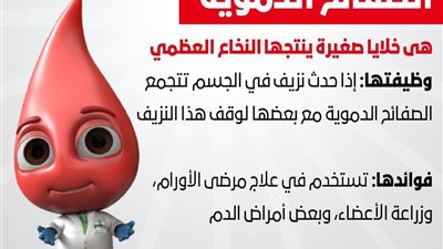نشرت وزارة الصحة انفوجراف أوضحت من خلاله معنى الصفائح الدموية ، وفوائدها ، موضحه إنها عبارة عن خلاي