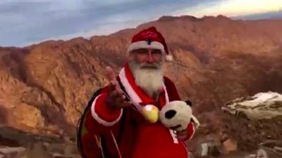 بابا نويل يوزع هدايا على الأطفال والسائحين أعلى قمة جبل موسى في سيناء