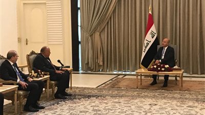 استقبل رئيس جمهورية العراق برهم صالح، اليوم، وزير الخارجية سامح شكري، ووزير خارجية المملكة الأردنية الهاشمية أيمن الصفدي