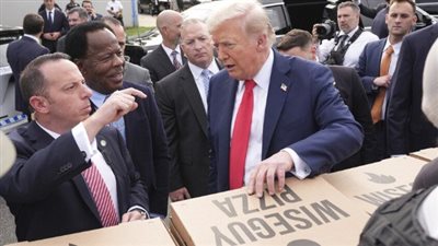قدّم الرئيس الأمريكي دونالد ترامب، يوم الخميس، وجبات سريعة من البيتزا والهامبرجر لعناصر من قوات الشرطة والحرس