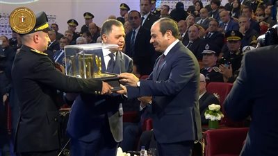 أهدى اللواء محمود توفيق وزير الداخلية، هدية تذكارية للرئيس عبدالفتاح السيسى خلال حفل عيد الشرطة الـ 71 المقام بأكاديمية