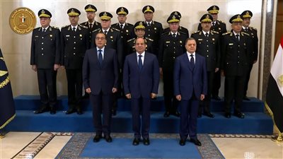 التقط الرئيس عبد الفتاح السيسي، صورة تذكارية مع وزير الداخلية وأعضاء المجلس الأعلى للشرطة ورئيس مجلس الوزراء