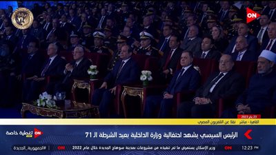 بدأت منذ قليل، فعاليات حفل عيد الشرطة الـ 71، بحضور الرئيس عبد الفتاح السيسي، وعدد من الوزراء المقام بأكاديمية الشرطة