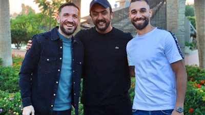 شارك الفنان أحمد العوضي، محبيه وجمهوره بصور له مع لاعبي النادي الأهلي عمرو السولية وعلي معلول.