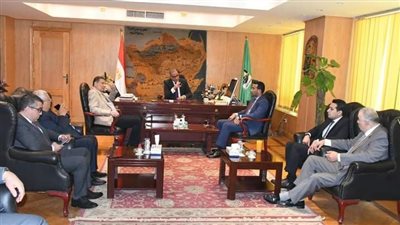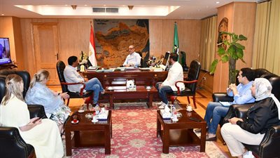 بحث الدكتور أحمد الأنصاري محافظ الفيوم، مع وفد مؤسسة four paws international، وشركة سرادار للتصميمات الإنشائية،