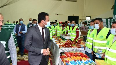تفقد الدكتور محمد عماد نائب محافظ الفيوم، أعمال تعبئة عدد 6 آلاف كرتونة مواد غذائية، بالصالة المغطاة بالمدينة