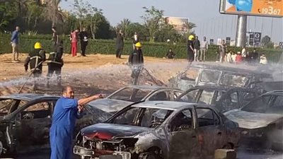 اندلع حريق هائل في خط غاز نتيجة انفجار مما أدى إلى تفحم 4 سيارات على طريق بلبيس الصحراوي بمنطقة الخانكة.