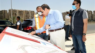 الرئيس يتفقد عدد من المحاور والطرق الجديدة بمنطقة شرق القاهرة وأعمال التطوير بمحيط مطار القاهرة .. ويشدد على الالتزام بالجداول الزمنية المحددة للانتهاء من الاعمال.. ويتوقف للاستماع لطلب سيدة (صور)
