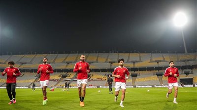 نزل لاعبي الفريق الأول لكرة القدم بالنادي الأهلي لإجراء عمليات الأحماء قبل انطلاق مباراة سموحة، المقرر لها الساعة التاسعة والربع مساء اليوم الأثنين، بملعب برج