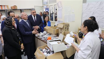 تفقد د. إبراهيم صابر محافظ القاهرة بحضور د. غادة فاروق نائب رئيس جامعة عين شمس القافلة التنموية الطبية