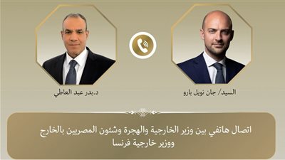 جرى اتصال هاتفى بين الدكتور بدر عبد العاطى وزير الخارجية والهجرة و جان نويل بارو وزير خارجية فرنسا