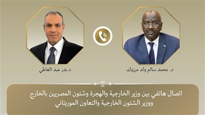 جرى اتصال هاتفي بين دكتور بدر عبد العاطي وزير الخارجية والهجرة والدكتور محمد سالم ولد مرزوك وزير الشئون الخارجية