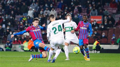 فاز فريق برشلونة على ضيفه إلتشي 3-2، خلال المباراة التي جمعتهما اليوم السبت بملعب "كامب نو"، في الجولة 18 من