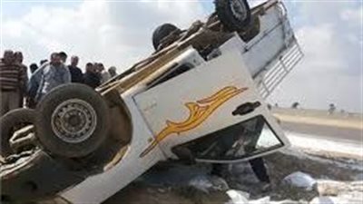 شهد الطريق الصحراوي الغربي بمركز ملوي جنوب المنيا حادث انقلاب سيارة ربع نقل محملة بالعمال بالقرب من م