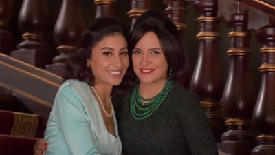نشرت الفنانة دينا الشربينى صور من كواليس مسلسل "قصر النيل " مع ريهام عبد الغفور وعلقت قائلة:"عايدة وكاميليا