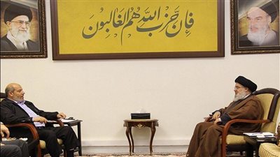 بحث الأمين العام لـحزب الله اللبناني حسن نصر الله مع وفد قيادي من حركة حماس برئاسة نائب رئيس الحركة خليل الحية،