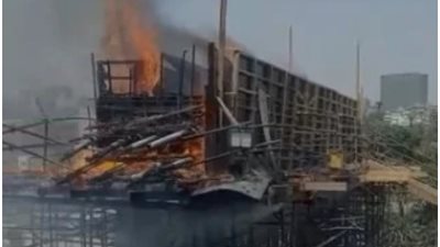 نشب حريق، صباح اليوم الخميس، بسقالات خشبية لكوبرى محور ترعة الزمر الجديد أمام مترو فيصل، غرب محافظة الجيزة
