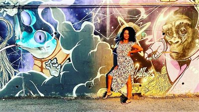 نانسي صلاح في صورة مع الـ"جرافتى" :" لما تبقى بتتصور وفجأة يظهر سرسوب الشمس الدافئ يغطي كتافي "