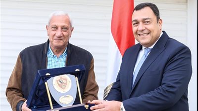منح اللواء مستشار عماد عبد العزيز رئيس اللجنة المكلفة بإدارة شئون نادي الزمالك، درع وشعار وميدالية النادي إلى إيهاب فهمي