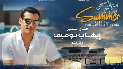 يستعد المطرب إيهاب توفيق لإحياء حفل غنائي كبير باستاد الاسكندرية الدولي وذلك يوم 27 يوليو الجاري ومن المقرر أن يقدم باقة متنوعة من اجمل اغانيه المميزة .