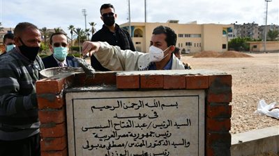 وضع وزير الشباب والرياضة، يرافقة محافظ شمال سيناء، حجر أساس الملاعب الفرعية بإستاد العريش.