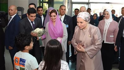 قدمت السيدة انتصار السيسي، قرينة رئيس الجمهورية، الشكر إلى حرم سلطان عمان، لزيارتها مستشفى 57357 ودعمها للأطفال المرضى.