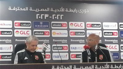 يتحدثان السويسري مارسيل كولر، المدير الفني للفريق الاول لكرة القدم بالنادي الأهلي، ومحمد الشناوي، كابتن ا