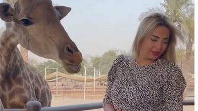 نشرت الإعلامية مى حلمى فيديو طريف لها خلال تقديمها الأكل للزرافة فى أحد الحدائق بدبى وعلقت على الفيديو قائلة " مفجوعة" فى إشارة منها إلى الزرافة.