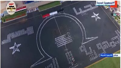 رسم طلاب كلية الشرطة، دفعة 2021، اليوم الأربعاء، كلمة "تحيا مصر"، والجمهورية الجديدة، بأجسادهم، على هامش حفل