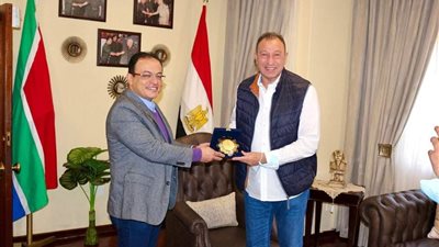 حرص العميد محمد حرب، الملحق العسكري في جنوب إفريقيا، على استقبال محمود الخطيب، رئيس النادي الأهلي ورئيس