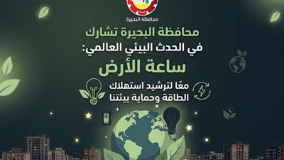 تشارك محافظة البحيرة في فعاليات “ساعة الأرض 2026”، في إطار دعمها لجهود الدولة المصرية في ترشيد استهلاك الطاقة وتعزيز الوعي البيئي، والحفاظ على الموارد الطبيعية، ضمن التوجهات الوطنية نحو تحقيق الاستدامة. ومن المقرر أن تقوم المحافظة، اليوم السبت الموافق 28 مارس، بإطفاء الأنوار والأجهزة غير الضرورية لمدة
