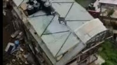 انهار مبنى متعدد الطوابق فى الهند جراء انزلاق أرضي تسببت به الأمطار الأخيرة في ولاية شيملا الهندية .