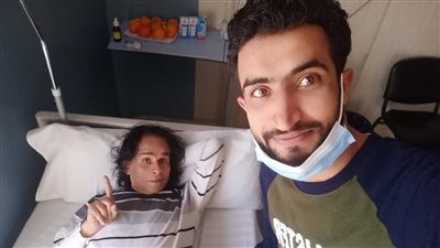 نشر عادل نافع نجل شقيقة الفنان على حميدة، صوره له برفقته من داخل المستشفى، مشيرا إلى استقرار