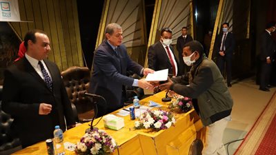 سلّم محمد سعفان وزير القوى العاملة، وبرفقته محمد عبد القادر نائب محافظ الأقصر، 2216 وثيقة تأمين تكافلي ضد