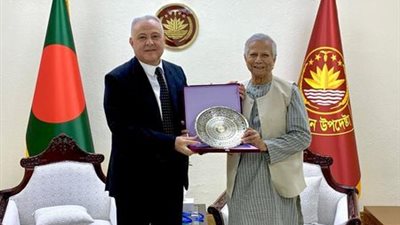 استقبل الدكتور محمد يونس، رئيس الوزراء بالحكومة الانتقالية في بنجلاديش السفير عمر فهمي، سفير مصر لدى بنجلاديش، حيث أعرب السفير عن دعم مصر للحكومة الانتقالية