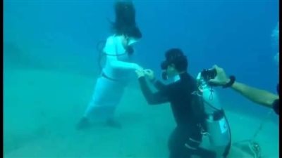 تقدم الغطاس المصرى الشهير صدام الكيلانى ، بخاتم الخطوبة لحبيبته تحت الماء فى مدينة دهب.