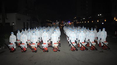 تقوم القوات المسلحة، بأعمال التطهير والتعقيم لمجمع الصالات المغطاة بإستاد القاهرة فى ظل الاجراءات الوقائية