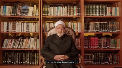بدأ قداسة البابا فرنسيس كلمته بمناسبة الاحتفال باليوم الدولي للأخوة الإنسانية بتقديم التحية لفضيلة الإمام الأكبر أ.د أحمد الطيب، شيخ الأزهر الشريف
