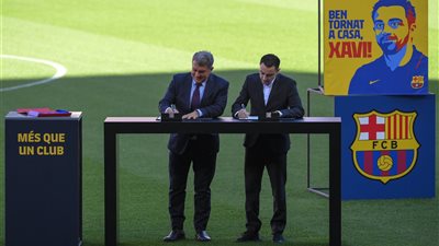 وقع المدير الفني الجديد لفريق برشلونة، تشافي هيرنانديز، العقود الرسمية مع النادي على أرضية ملعب "كامب نو"، حيث حضر