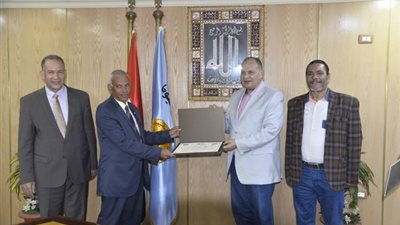 كرم اللواء عصام سعد محافظ أسيوط المهندس محمد صلاح الدين عبدالغفار رئيس شركة مياه الشرب والصرف الصحي بأسيوط