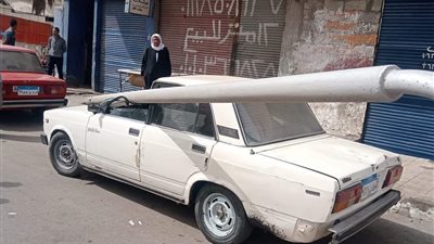 تسبب سقوط عمود إنارة في تحطم سيارة، أثناء توقف السيارة في شارع الموقف الجديدة، بدائرة قسم شرطة دمنهور بمحافظة البحيرة،