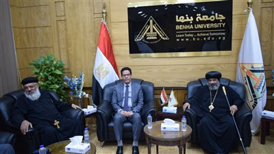 استقبل الدكتور ناصر الجيزاوى رئيس جامعة بنها نيافة الأنبا نوفير أسقف شبين القناطر وتوابعها، والوفد