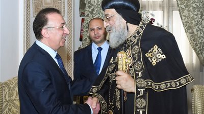 هنىء اللواء محمد الشريف محافظ الإسكندرية، قداسة البابا تواضروس الثاني بابا الإسكندرية وبطريرك الكرازة