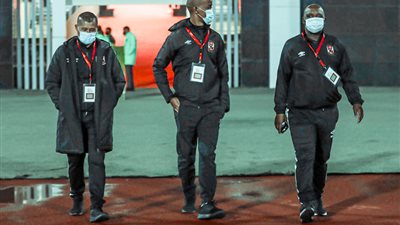 عقد بيتسو موسيماني، المدير الفني للفريق الأول لكرة القدم بالنادي الأهلي، محاضره مع اللاعبين قبل انطلاق المران الذي أقيم صباح