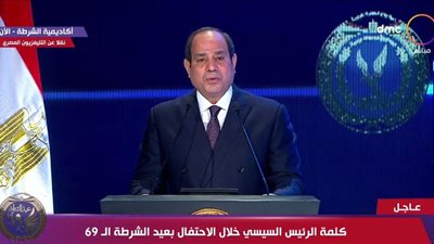 قال الرئيس عبد الفتاح السيسى: "نحتفل اليوم معا بعيد الشرطة، والذى يوافق ذكرى غالية في سجل الوطنية