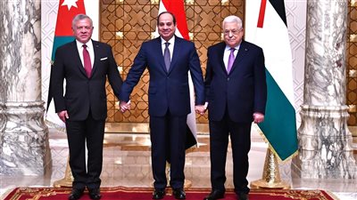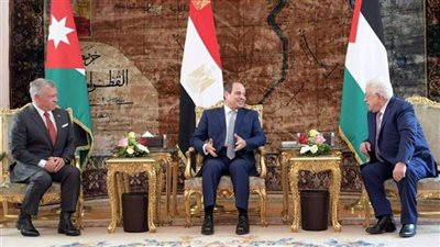 عقد الرئيس عبد الفتاح السيسي ظهر اليوم الثلاثاء قمة ثلاثية مع ملك الأردن الملك عبد الله الثاني والرئيس الفلسطيني محمود عباس بقصر