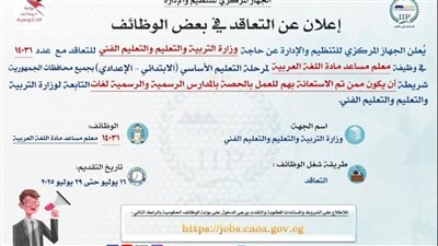ما هي شروط التقديم في وظائف معلم مساعد لغة عربية 2025…أعلن الجهاز المركزي للتنظيم والإدارة، برئاسة الدكتور صالح الشيخ، عن فتح باب التقديم لمسابقة جديدة تهدف