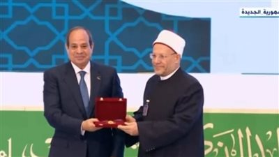 كرم الرئيس عبدالفتاح السيسي الدكتور شوقي علام، مفتى الجمهورية السابق، خلال احتفالية ذكرى المولد النبوي الشريف، والذي نقلته قناة اكسترا